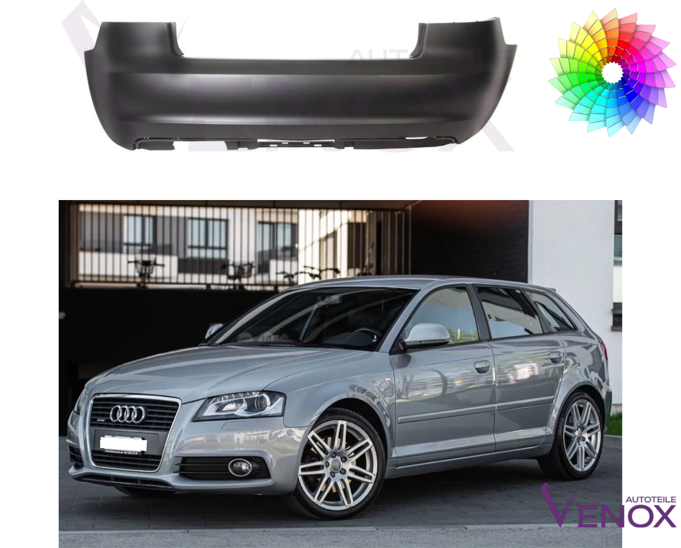 Für Audi A3 8P 2008-2012 3-Türer PDC Stoßstange Hinten Lackiert In Wunschfarbe